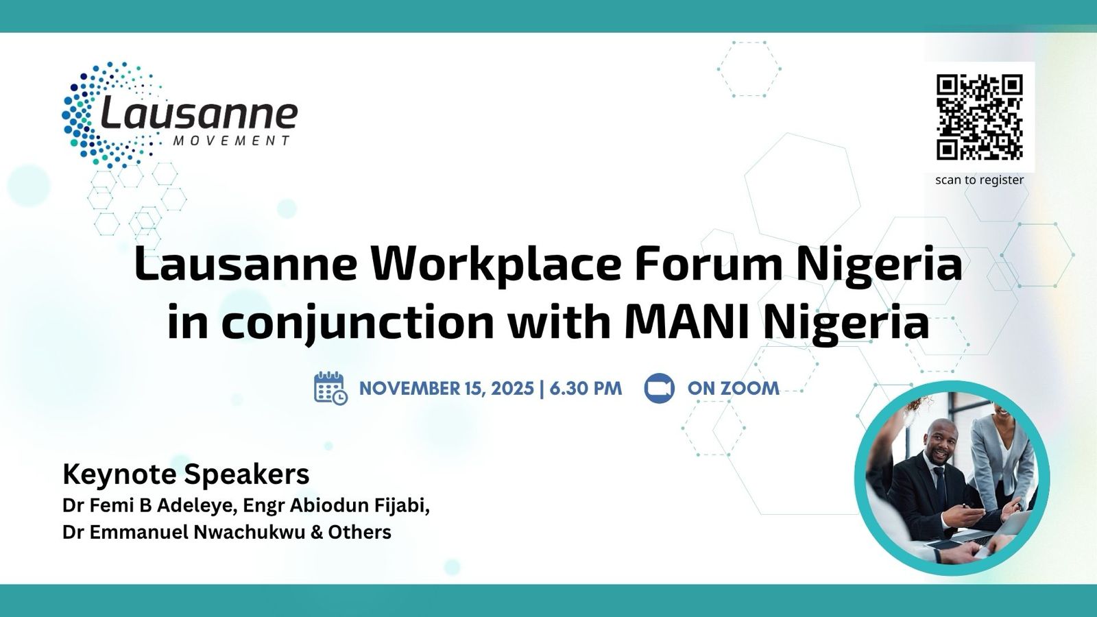 The Lausanne Workplace Ministry Issue Network, in collaboration with Movement for Africa National Initiatives (MANI Nigeria), invites you to an online gathering designed to empower and mobilize Christian professionals to live out their faith in the workplace.